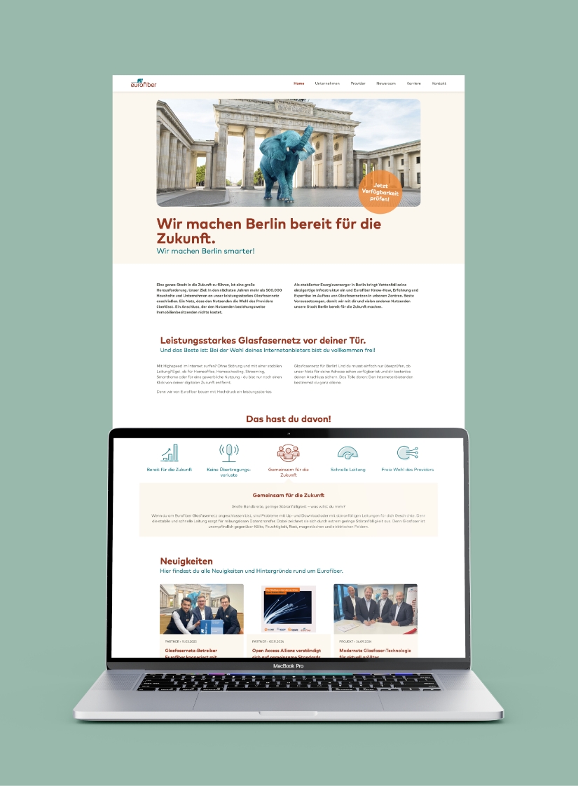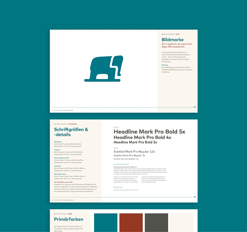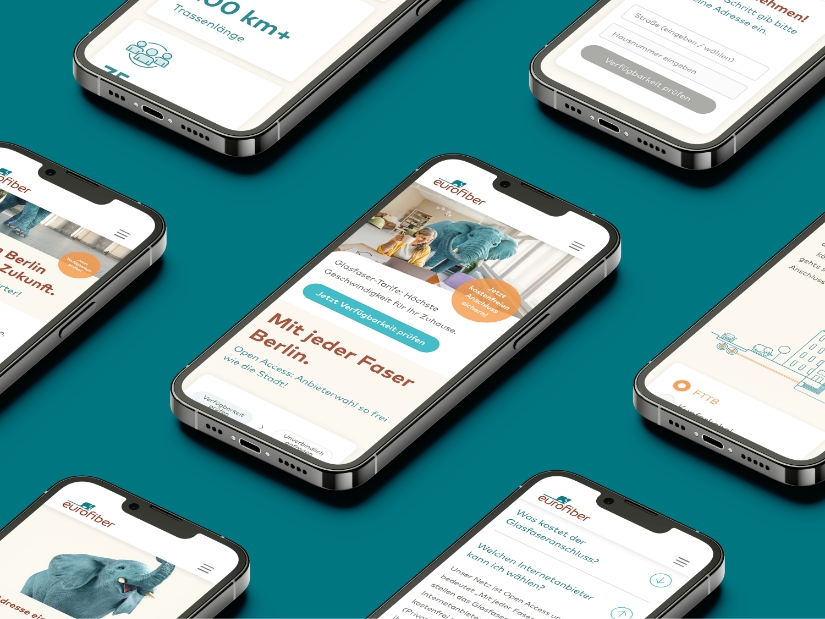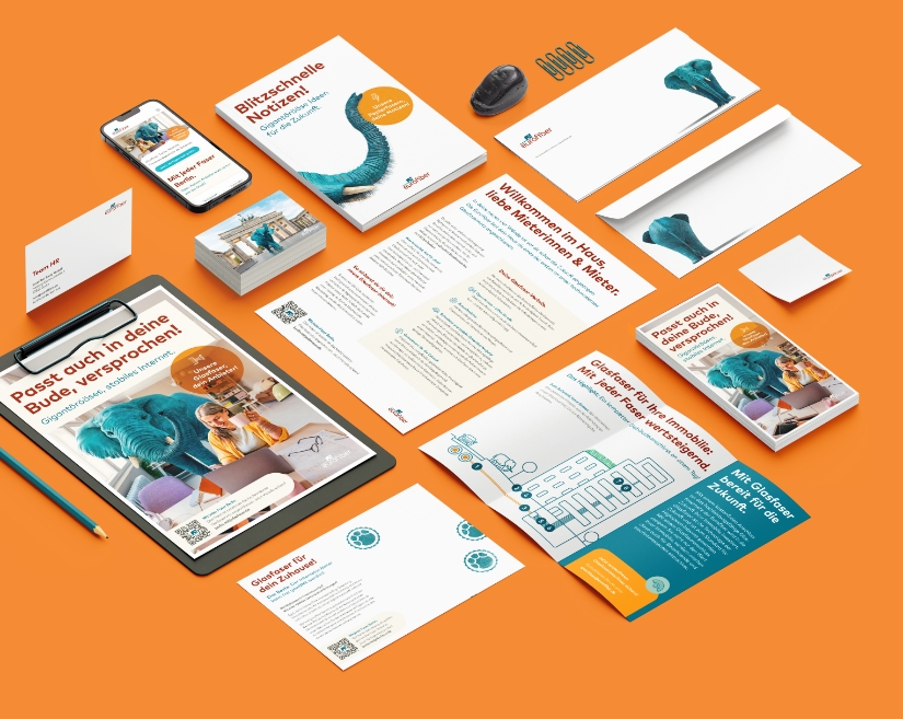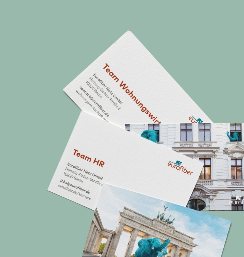 Nach erfolgreichem Pitch durften wir in 2024 den Rebrand des Unternehmens Vattenfall Eurofiber begleiten. Dabei haben wir das Glasfaserunternehmen in seinem neuen Auftritt als „Eurofiber“ positioniert. Unser Team entwickelte eine frische, moderne Corporate Identity und erstellte einen umfassenden Brandguide, der die neu definierten Markenwerte klar widerspiegelt. Mit neuem Brandguide galt es bestehende Marktingmaterialien anzupassen, um die Marke nach Außen einheitlich zu positionieren. In diesem Zuge wurde die Geschäftsausstattung überarbeitet und die verschiedenen Webseiten des Unternehmens modernisiert, um den digitalen Auftritt zu stärken. Ein besonderes Highlight dieses Projektes ist der im Rahmen des Brandguides entstandene „Petrolfant“ – unser charmanter neuer Markenbotschafter für Eurofiber, der die Marke lebendig und einprägsam repräsentiert.
